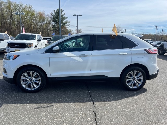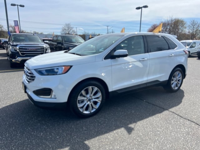 This 2022 Ford Edge Titanium is proudly offered by Family Ford of Enfield This Ford includes: EBONY, LEATHER-TRIMMED HEATED SPORT BUCKET SEATS Seat Memory Power Passenger Seat Power Driver Seat Heated Front Seat(s) Leather Seats Driver Adjustable Lumbar Bucket Seats TRANSMISSION: 8-SPEED AUTOMATIC 8-Speed A/T Transmission w/Dual Shift Mode A/T EQUIPMENT GROUP 300A PANORAMIC VISTA ROOF Panoramic Roof Generic Sun/Moonroof Sun/Moonroof TIRES: P245/55R19 AS BSW (STD) Tires - Front Performance Tires - Rear Performance STAR WHITE METALLIC TRI-COAT *Note - For third party subscriptions or services, please contact the dealer for more information.* Treat yourself to an SUV that surrounds you with all the comfort and conveniences of a luxury sedan. There's a level of quality and refinement in this Ford Edge Titanium that you won't find in your average vehicle. This Ford Edge Titanium comes equipped with all wheel drive, which means no limitations as to how or where you can drive. Different terrains and varying weather conditions will have little effect as to how this vehicle performs. Marked by excellent quality and features with unmistakable refined leather interior that added value and class to the Ford Edge Titanium. - Options: PANORAMIC VISTA ROOF, EQUIPMENT GROUP 300A, STAR WHITE METALLIC TRI-COAT, EBONY, LEATHER-TRIMMED HEATED SPORT BUCKET SEATS, TIRES: P245/55R19 AS BSW (STD), TRANSMISSION: 8-SPEED AUTOMATIC